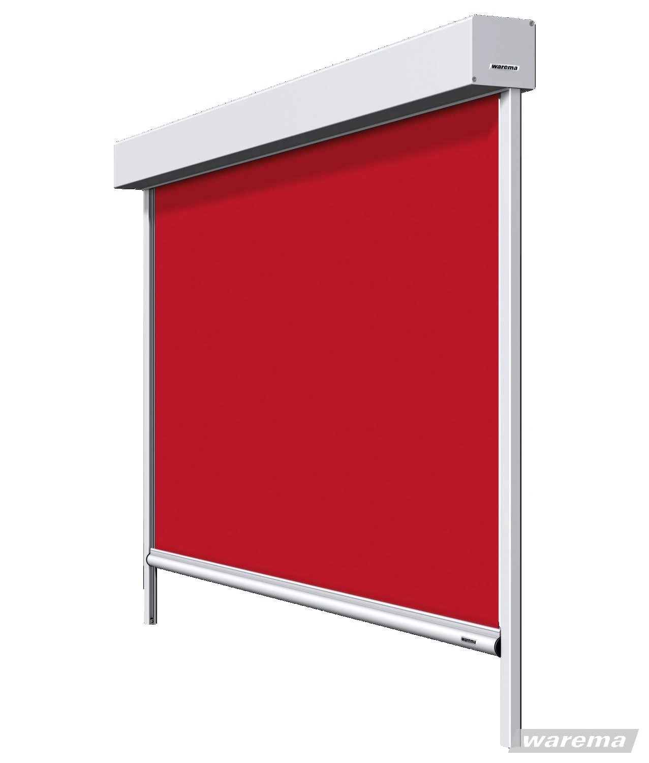 Rotes Rollobild mit Aluminiumkassette als Markisolette